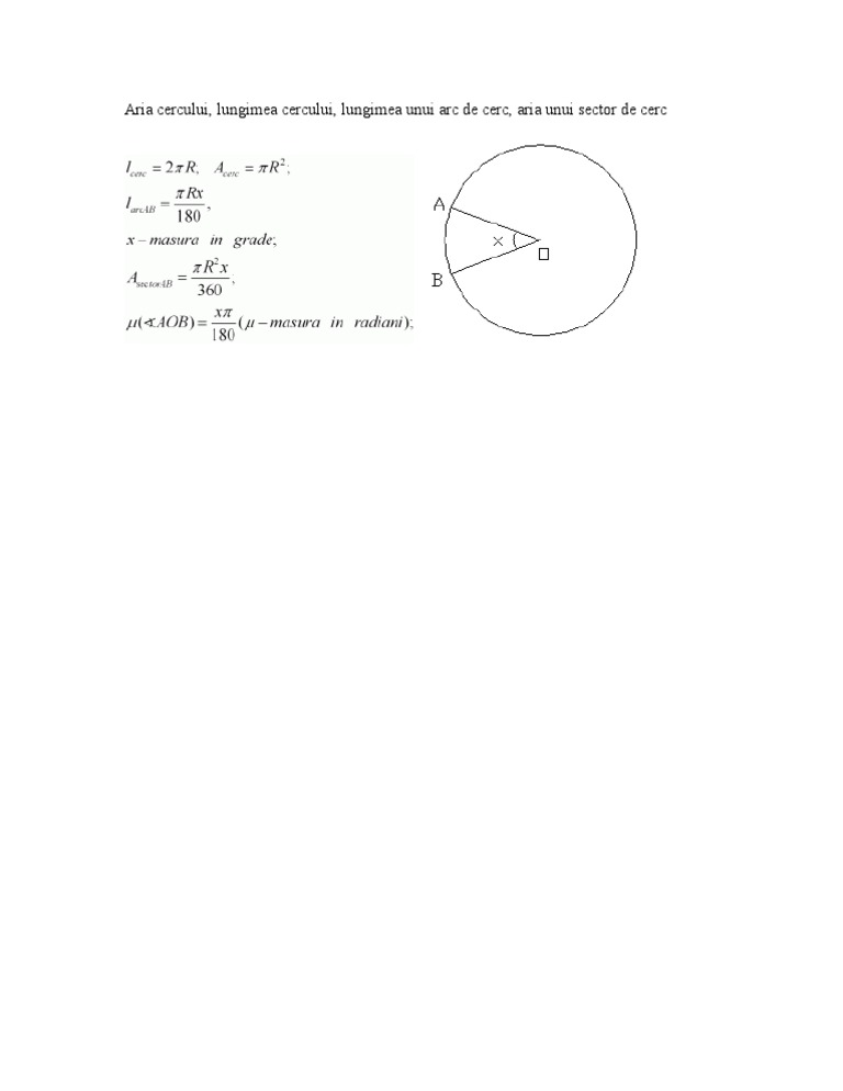 Aria Cercului Lungimea Cercului Lungimea Unui Arc De Cerc Aria Unui Sector De Cerc