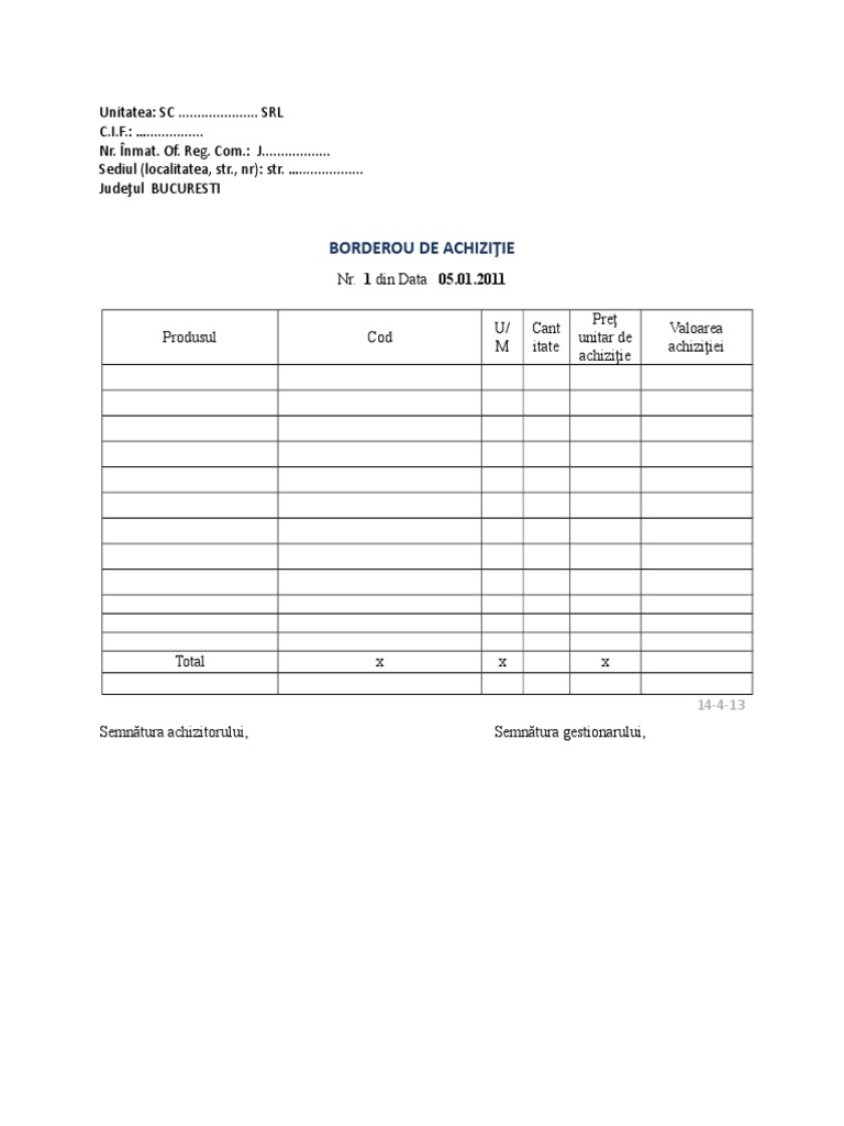 Borderou De Achizitii Personalizat Formulare Tipizate