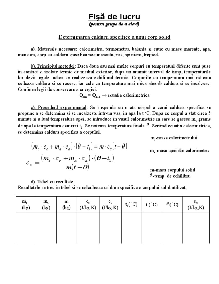 Det Caldurii Specifice A Unui Corp Solid