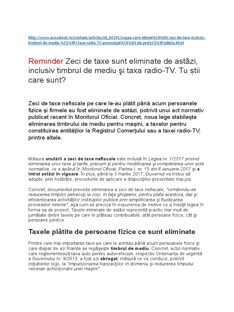 Reminder Zeci De Taxe Sunt Eliminate De Astăzi Inclusiv Timbrul De Mediu Si Taxa Radio Tv Tu știi Care Sunt