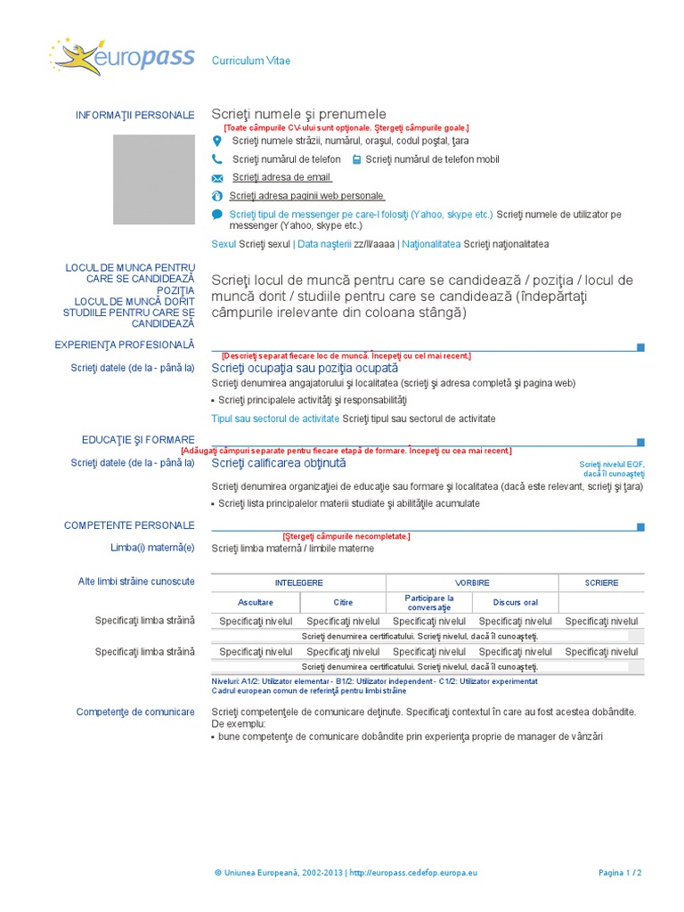 Pdf Instrucţiuni Pentru Completarea Cv Ului Europass Bulmaga Andreea Academia Edu