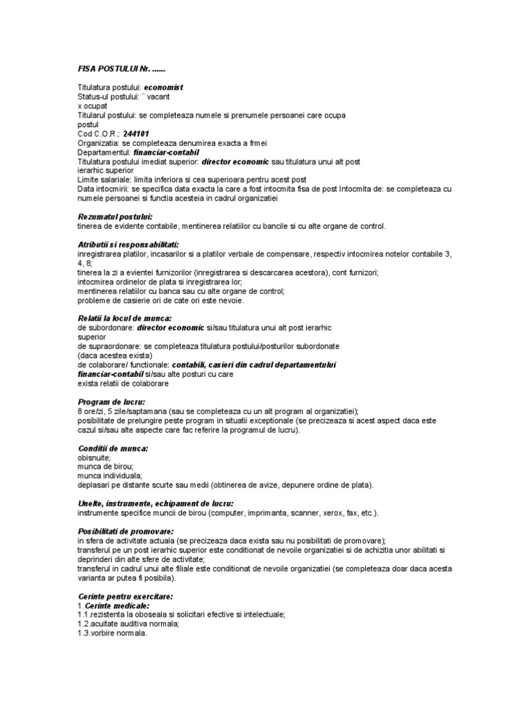 Doc Denumirea Postului Contabil Sef Baron Madalina Academia Edu