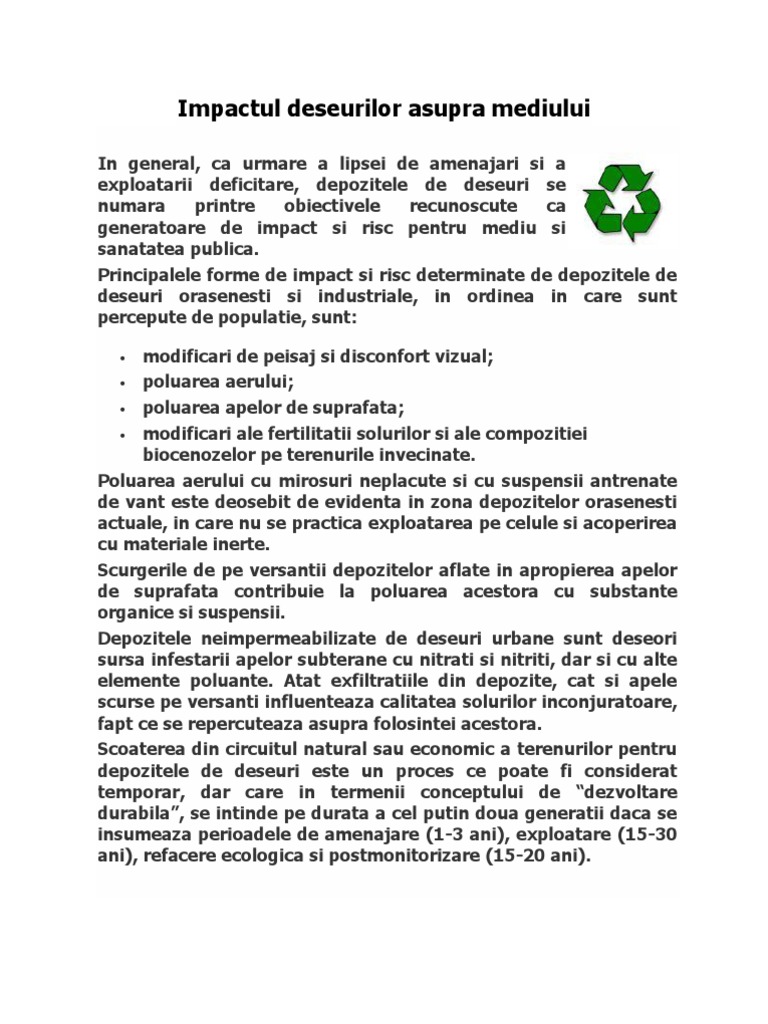Referat Impactul Deseurilor Asupra Mediului Ecologie 201293