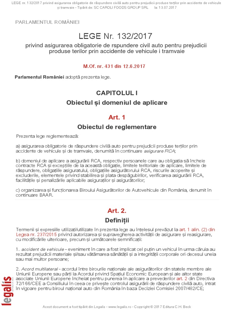 L 132 2017 Asigurarea Obligatorie De Rca Pentru Prejudicii Produse Prin Accidente In Vig Din 12 07 2017 Doc