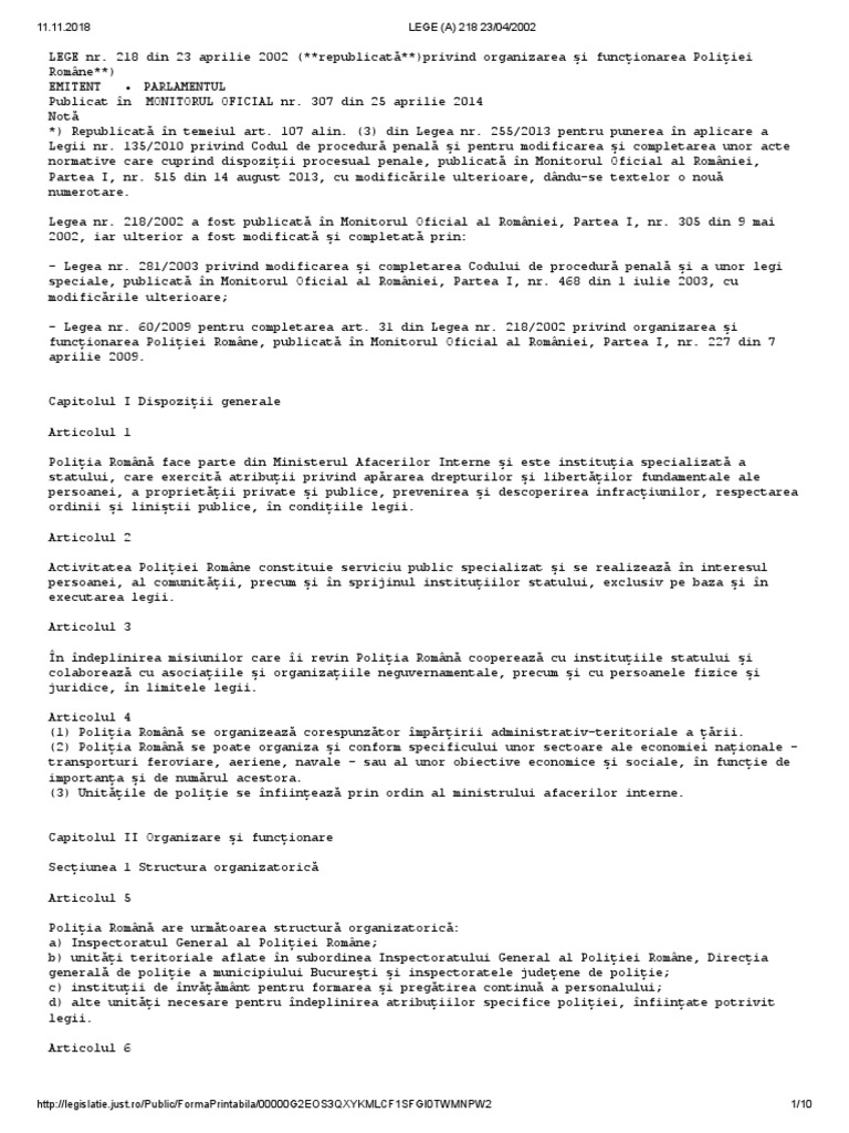 Legea Nr 218 2002 Privind Organizarea și Funcționarea Poliției Romane Youtube