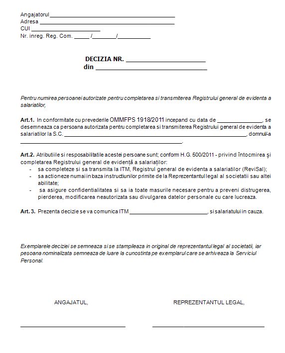 Decizie Desemnare Persoană Responsabilă Revisal Model 2019 Oficial Cabinetexpert Ro Blog Contabilitate