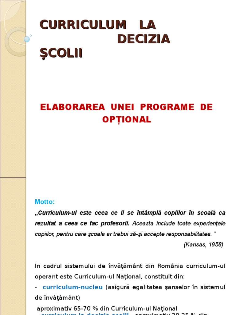 C Urriculum La Decizia Scolii