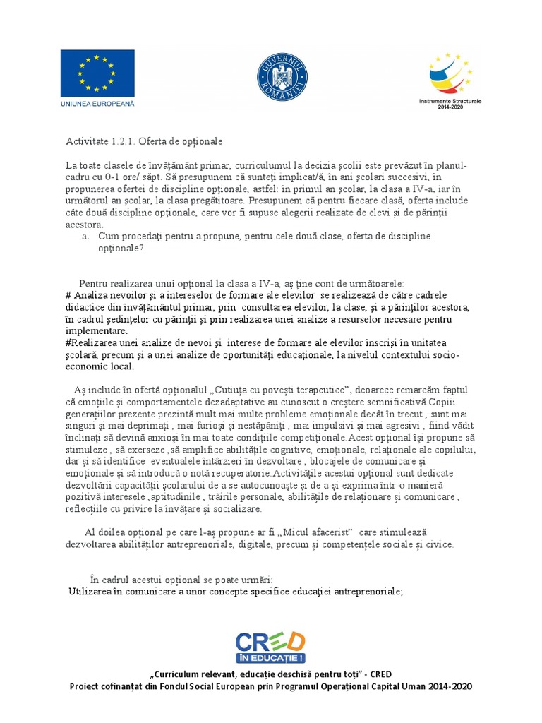 Programe Orientative Pentru Disciplinele Optionale Cls 1 4 Roxana Enache Emag Ro