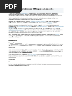 Model De Notificare Incetare Cim In Perioada De Proba Codul Muncii