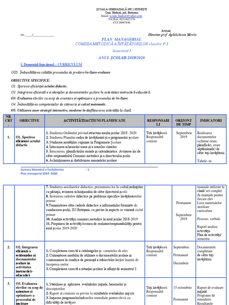 Planuri Manageriale Scoala Gimnaziala Comuna Apostolache