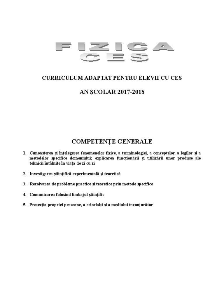 Planificare Fizica Ces Cl Vi