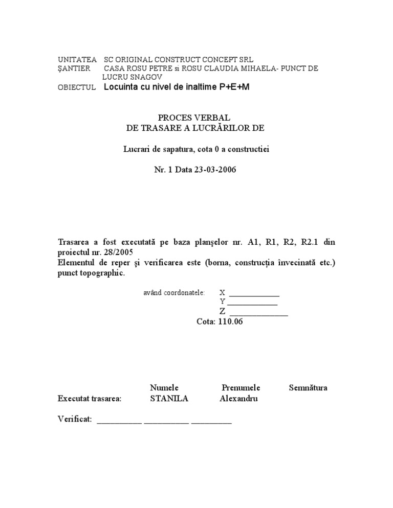 Doc Proces Verbal De Trasare A Lucrarilor Tanasescu Cristian Academia Edu