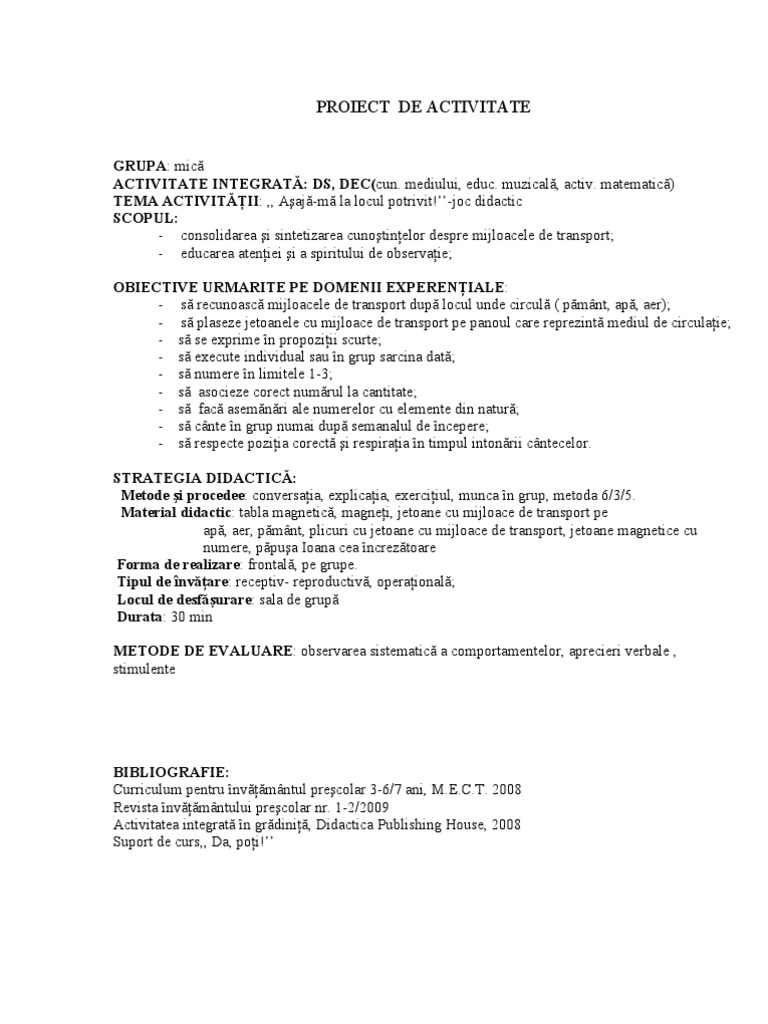 Proiect Proiect De Activitate Integrata Pedagogie 280690