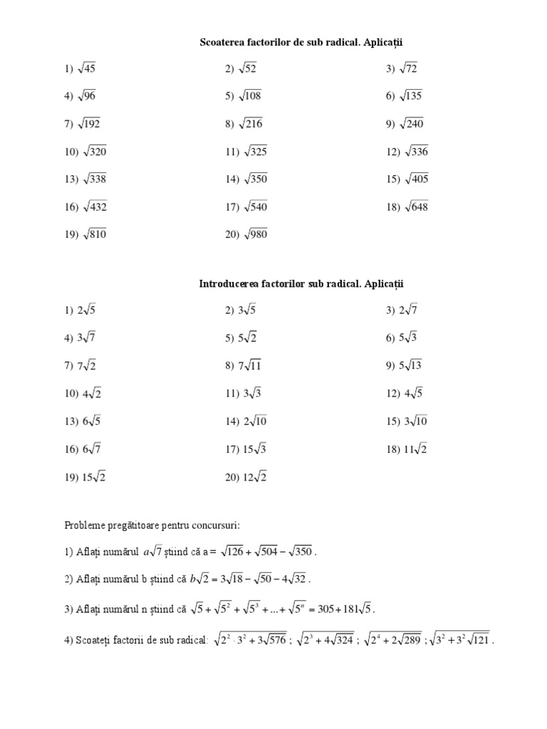 Scoaterea Factorilor De Sub Radical Introducerea Factorilor Sub Radicalcl 7