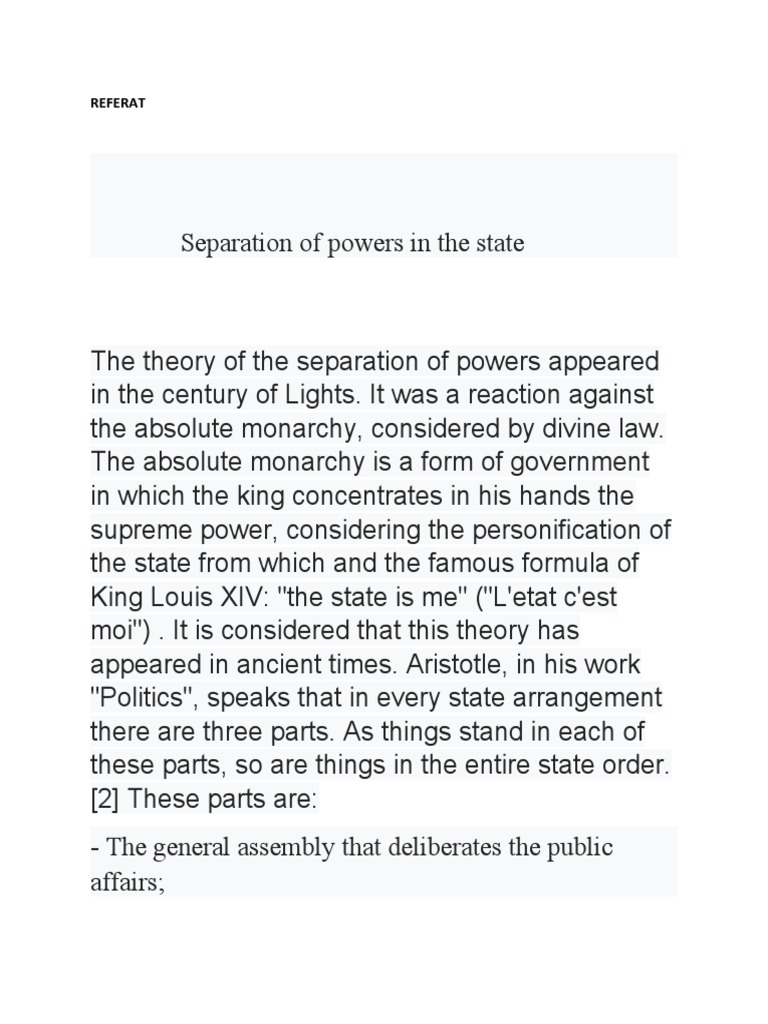 Referat Separatia Puterilor In Stat Drept 26110 Regielive